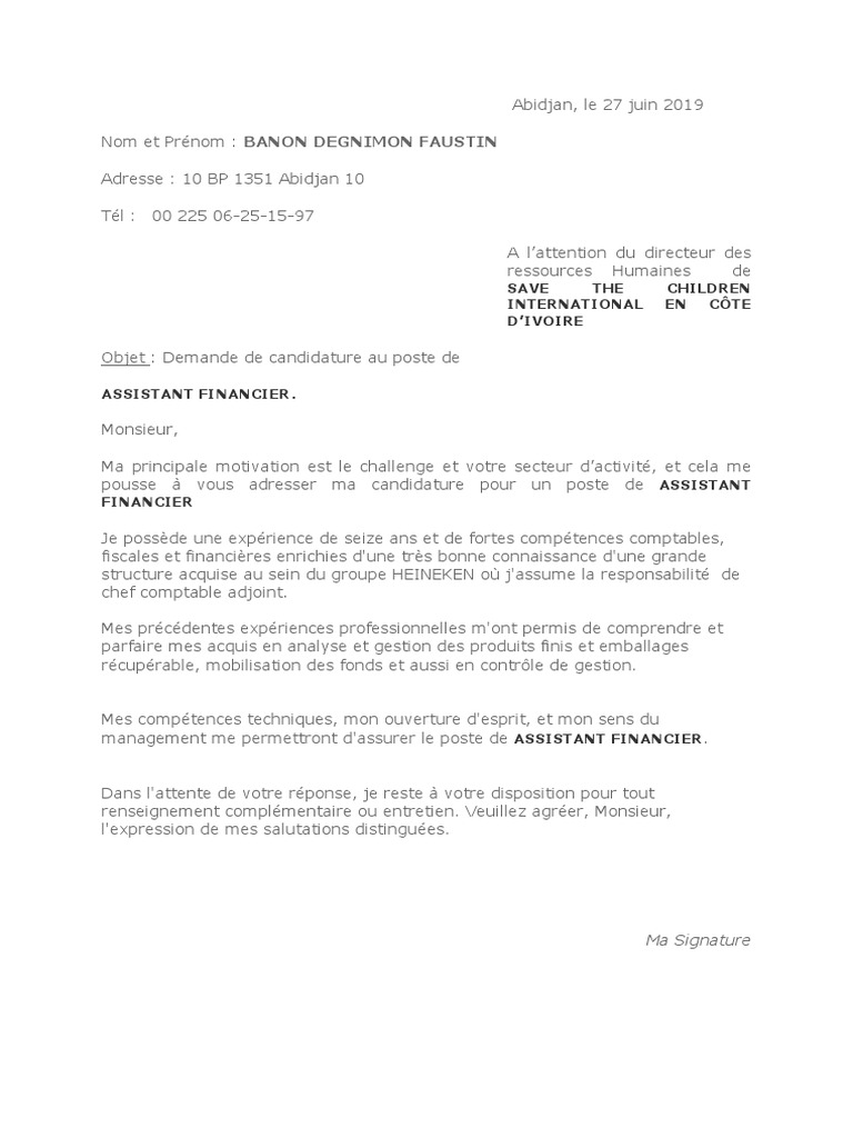 Elle peut être utile postuler à un emploi sans mon manque d'expérience professionnelle n'entame en rien ma volonté à occuper ce poste et me pousse, au contraire, à faire mes preuves. Dès sa première lecture, l'employeur doit comprendre que vous êtes fait pour le poste, vous devez donc être clair, concis et efficace dans votre. Rédigez rapidement votre lettre de motivation au poste de comptable grâce au modèle gratuit de merci facteur ✅ nous l'imprimons et la postons pour vous. Il est fortement recommandé d'envoyer ce modèle de lettre en lettre recommandée avec avis de réception, mais vous pouvez aussi l'envoyer. J'ai une formation en vente mais je suis intéressé(e) par tout type de poste car je désire mettre à profit cette année de transition pour travailler et obtenir.