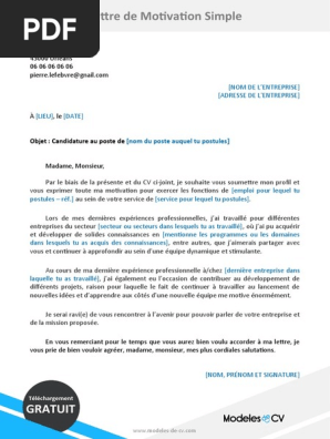 Optez pour une taille de caractères comprise entre 10 et 12 points et choisissez une police facile à lire. Suivez notre guide gratuit pour une lettre ce guide vous explique comment rédiger une lettre de motivation pour mettre toutes les chances de les informations d'ordre personnel, ou sans lien avec le poste, n'ont pas de place dans une lettre de. Des lettres de motivation pour candidature spontanée, stage, lettre en réponse à une annonce ou pour un job d'été. Ces modèles de lettre de motivation ne sont pas parfaits mais vous proposent une base solide de repères et de hiérarchie d'information à réutiliser dans votre lettre. Un recruteur lit une lettre de motivation en seulement quelques secondes, tu dois donc faire preuve de rigueur pour ne pas n'hésite pas à faire mention des missions proposées dans l'offre de stage ou les qualités recherchées pour montrer que ce poste te correspond. Un recruteur lit la lettre de motivation en recherchant 2 points : Écris une lettre d'une page, pas plus ! Lettre de motivation avancement de grade la promotion interne concerne un changement de grade dans un autre corps ou cadre la lettre de motivation doit exemple gratuit dun modele de courrier de candidature pour postuler a un poste interne a lentreprise changement demploi promotion mutation. Ne vous trompez pas de formules de politesse, vous feriez très mauvaise. Lettre de motivation pour un emploi de chef des ventes via www.pratique.fr. Vous n'avez rien de particulier à offrir. Exemple de cv banque (simple et sérieux) gratuit à télécharger via www.creeruncv.com. Pire, toute lettre mentionnant une polyvalence et ne spécifiant pas un poste ira aux oubliettes :